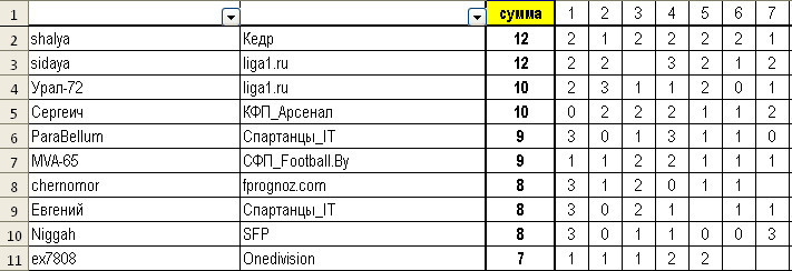 | итоги 7 тура