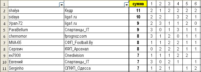| 11 тур итоги